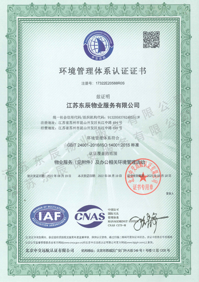 2022-2025年環(huán)境管理體系認(rèn)證證書