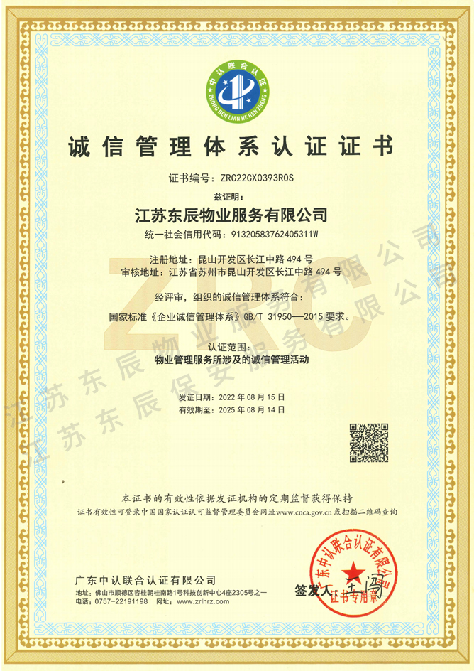 2022-2025年誠信管理體系認(rèn)證證書
